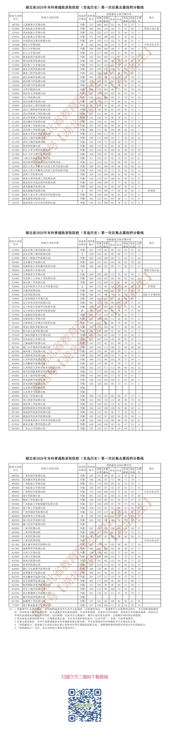 湖北省2025年本科普通批錄取院校(首選歷史)第一次征集志愿投檔分數線