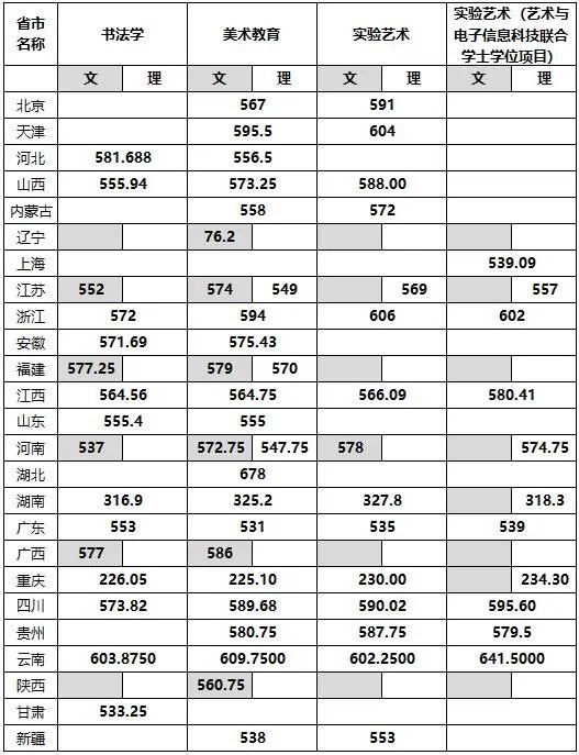 一、藝術類本科批(省統考類)各專業錄取分數線