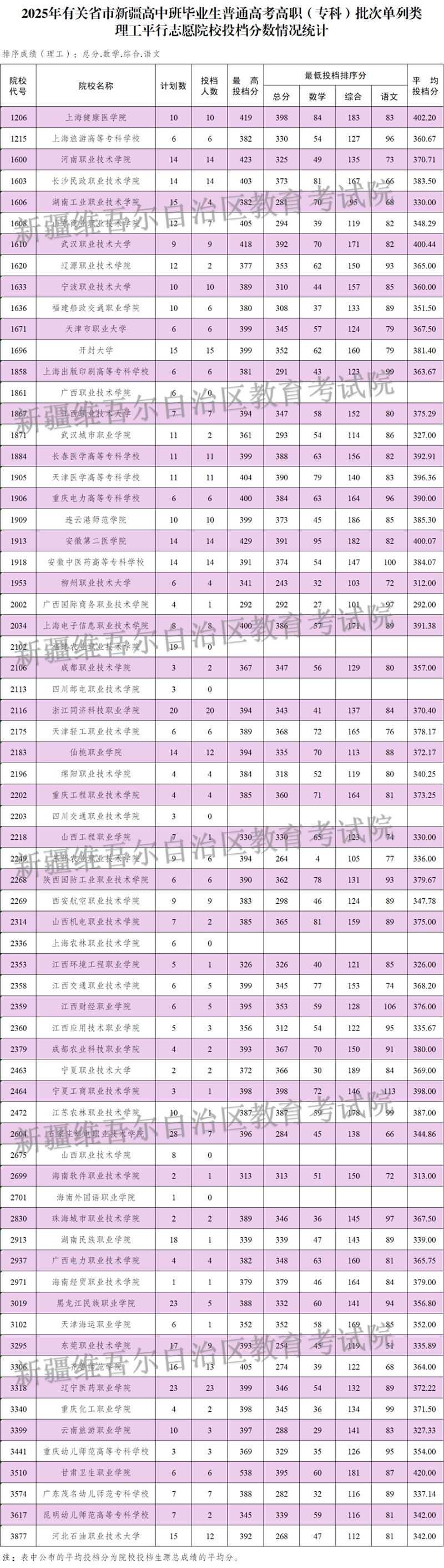 按照錄取工作安排,自治區2025年普通高校招收有關省市新疆高中班畢業生高職(專科)批次于8月14日正式投檔錄取,新疆教育考試院根據投檔原則進行了投檔,現將相關院校投檔情況公布如下: