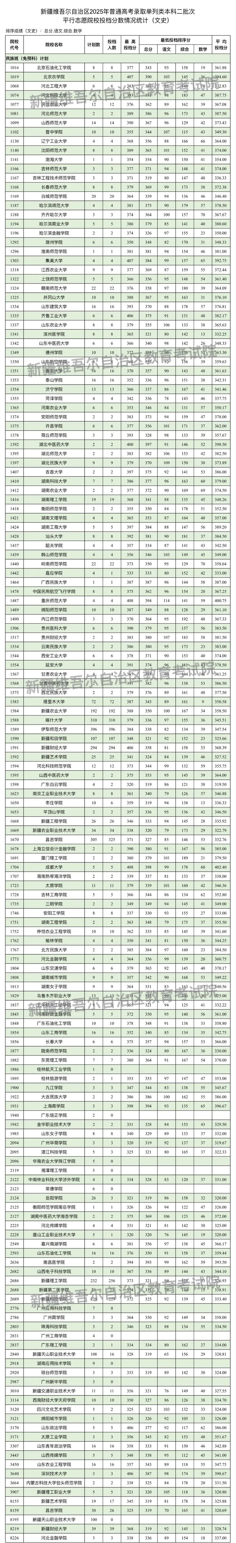 | 新疆維吾爾自治區2025年普通高校招生單列類本科二批次投檔情況 |