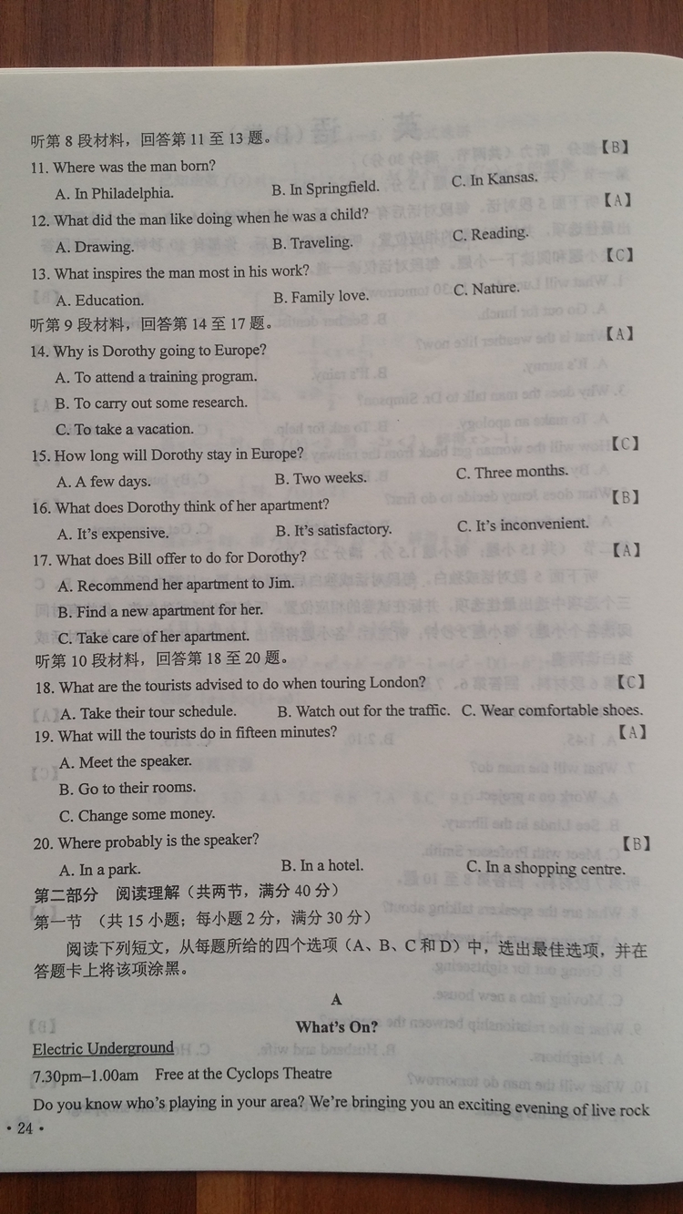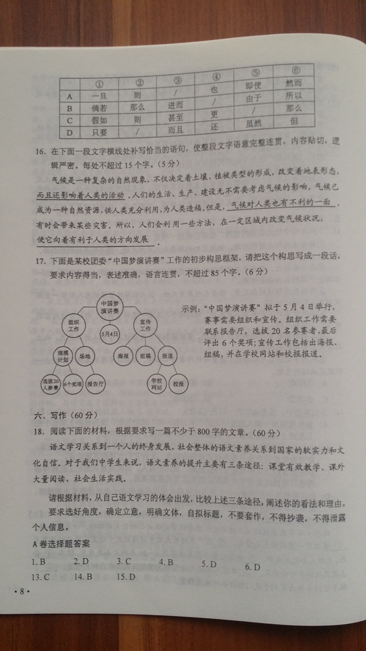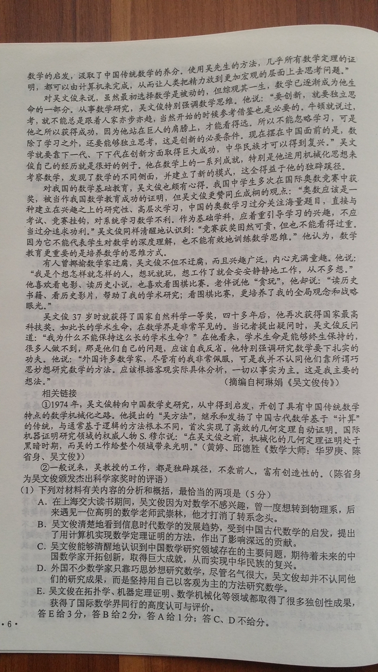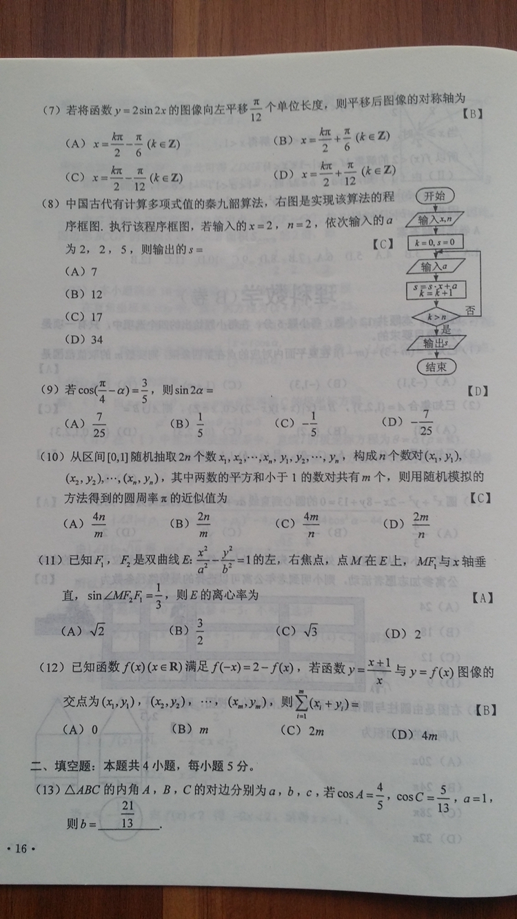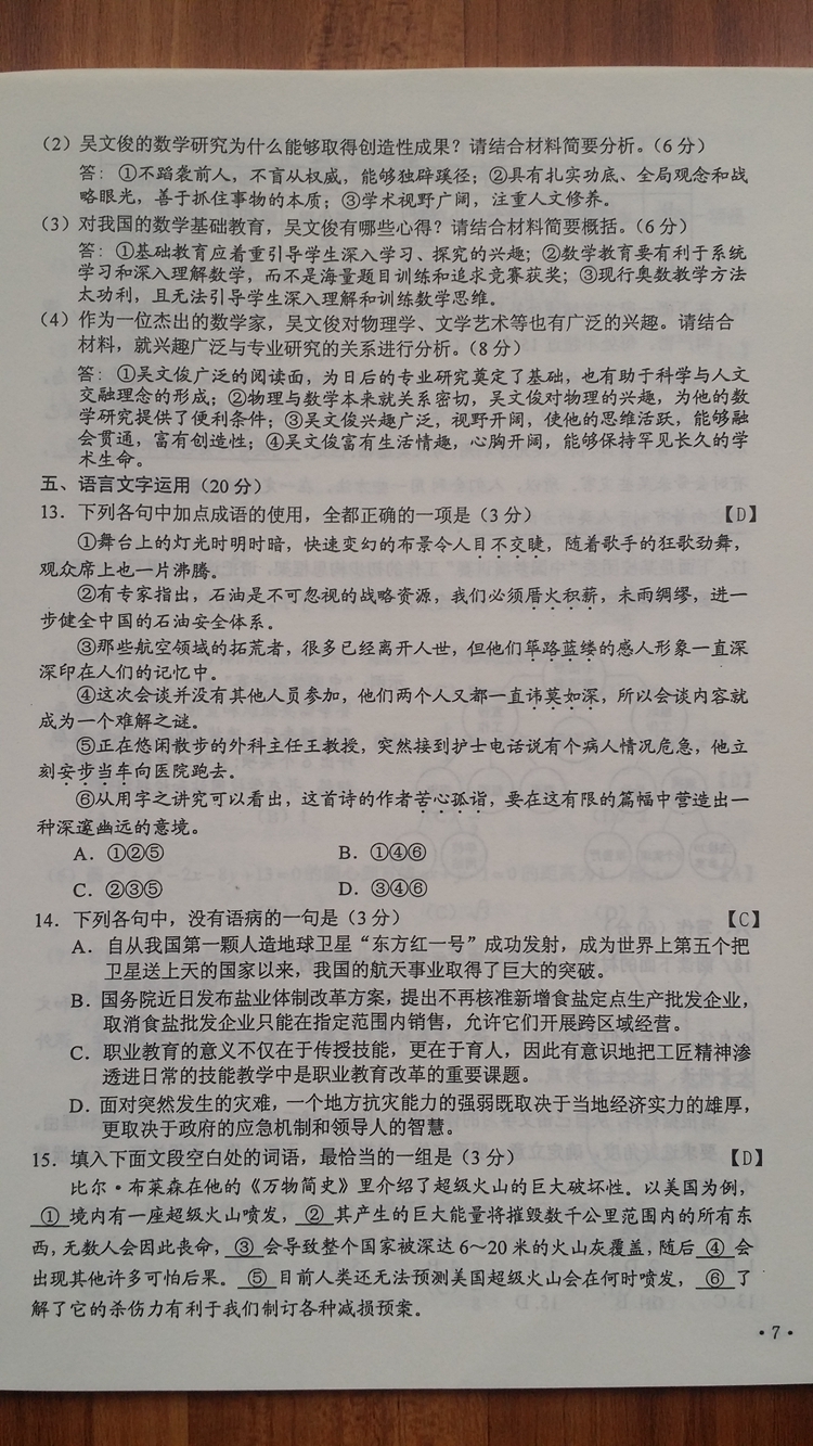 陜西:2016年普通高等學(xué)校招生考試試題及參考答案