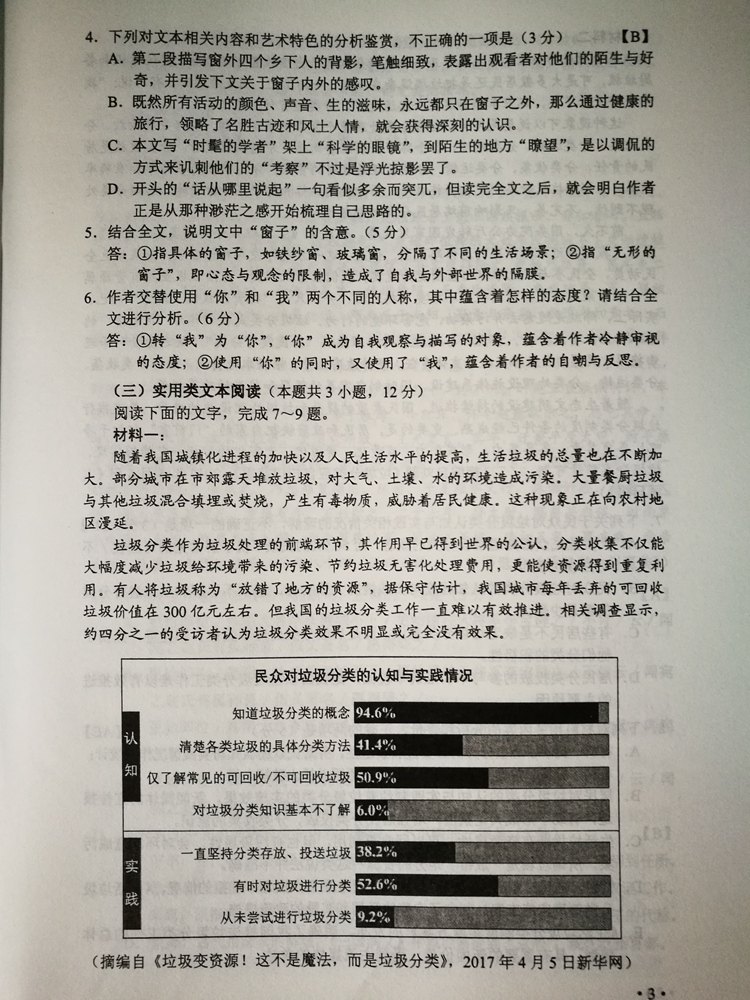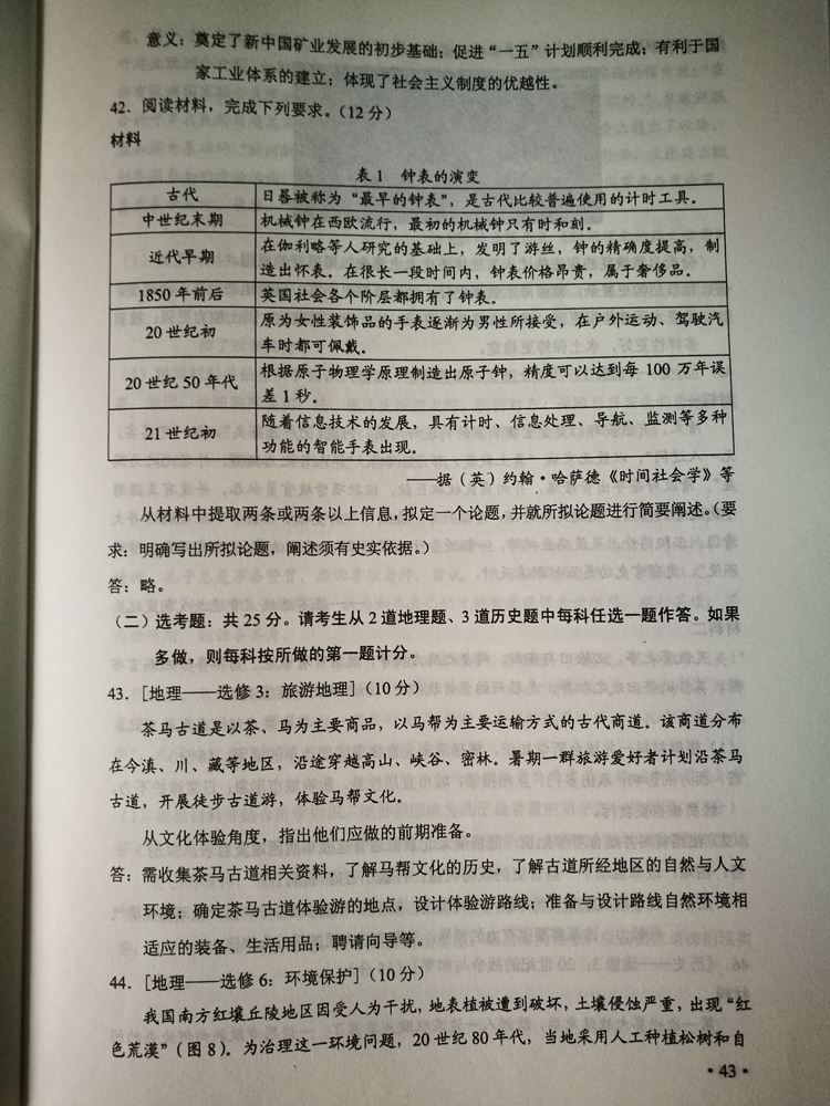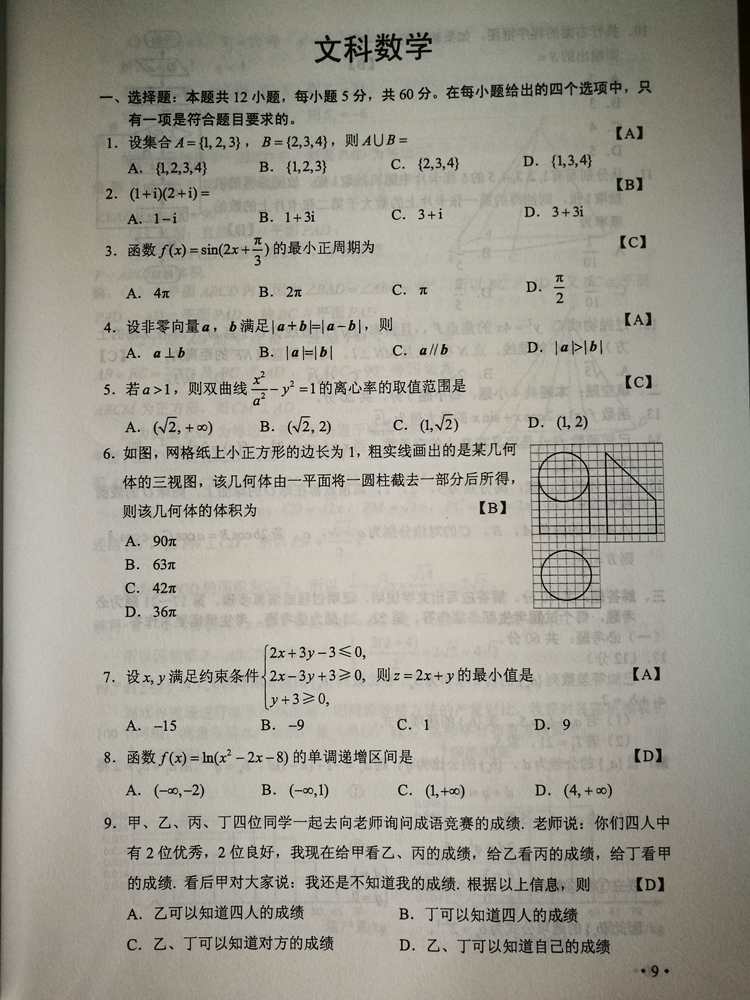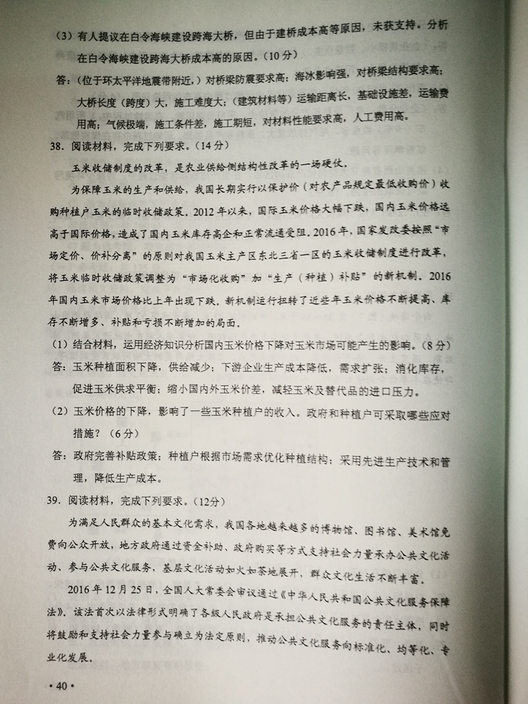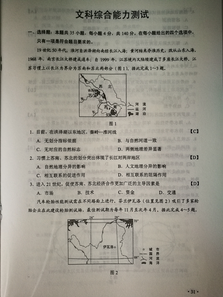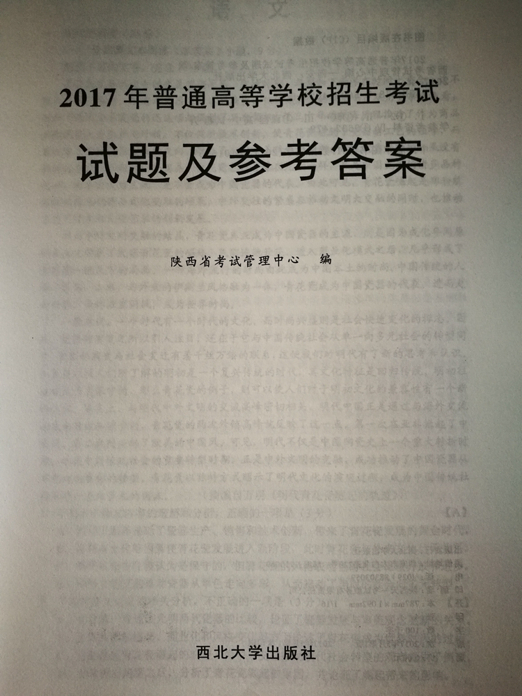 陜西:2017年普通高等學校招生考試試題及參考答案