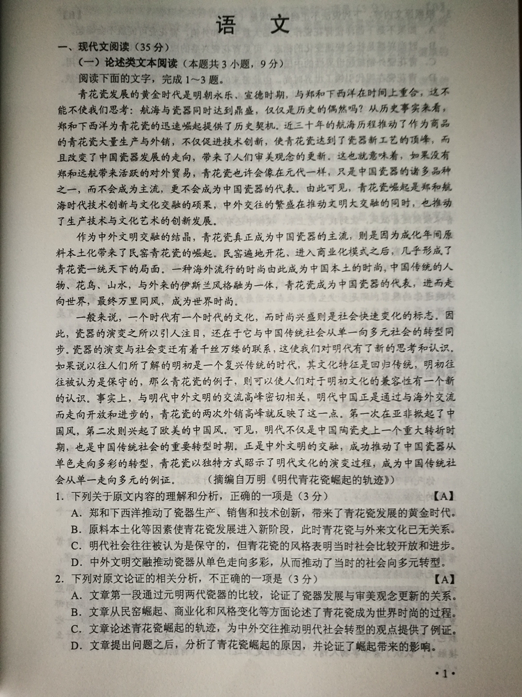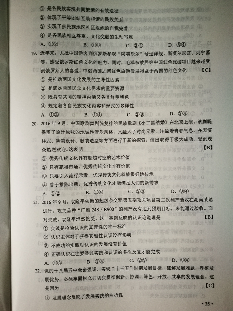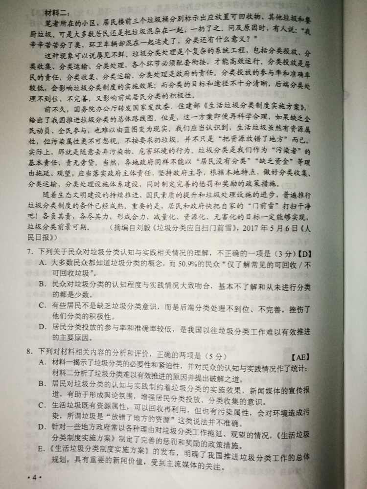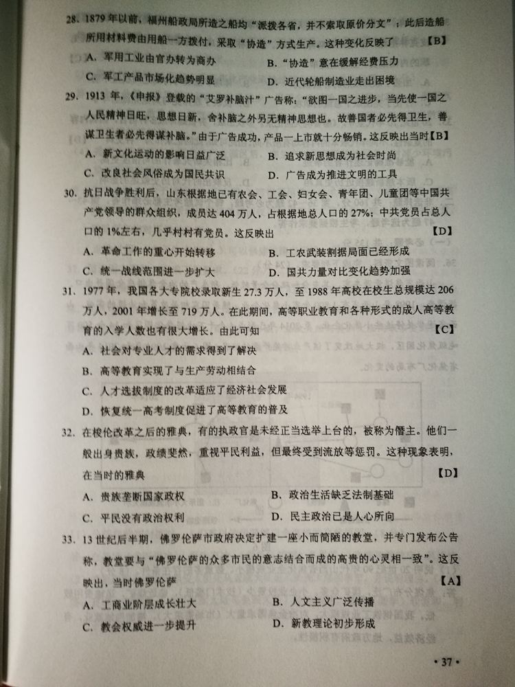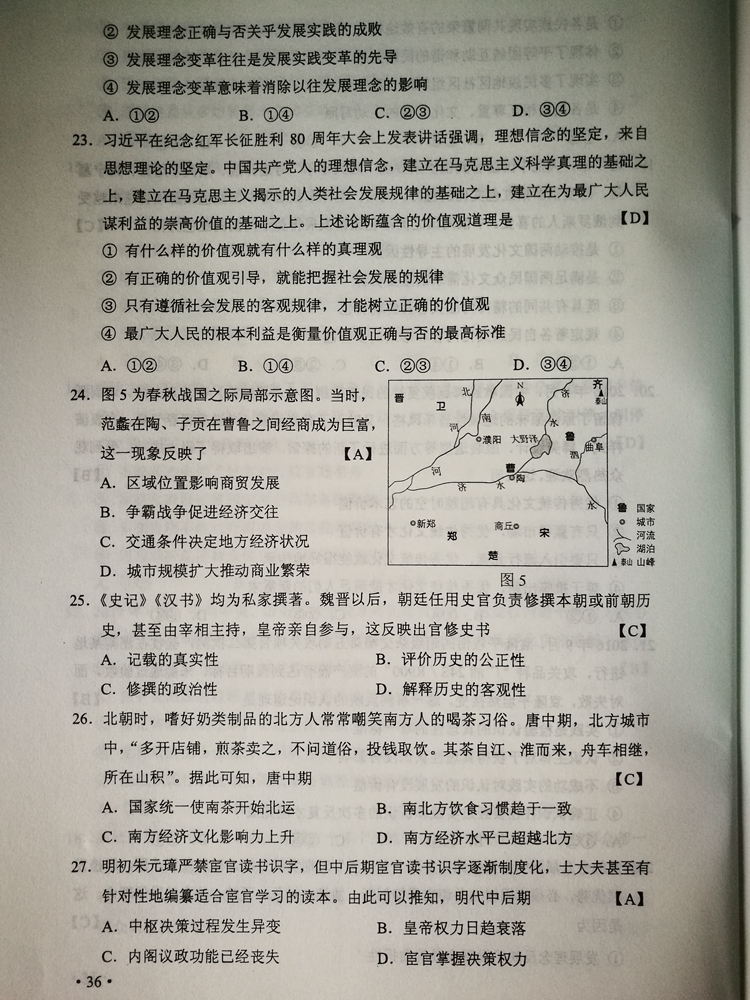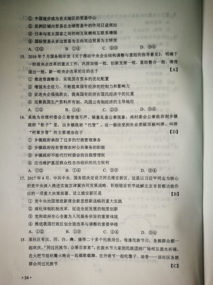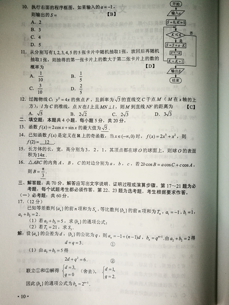 陜西:2017年普通高等學校招生考試試題及參考答案