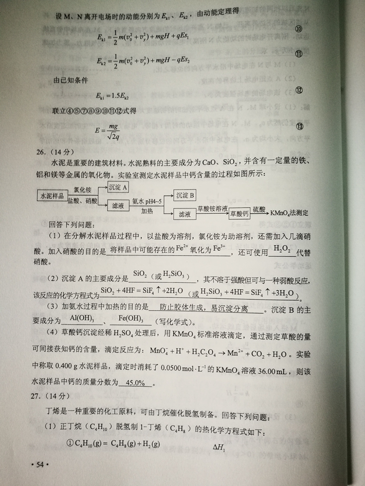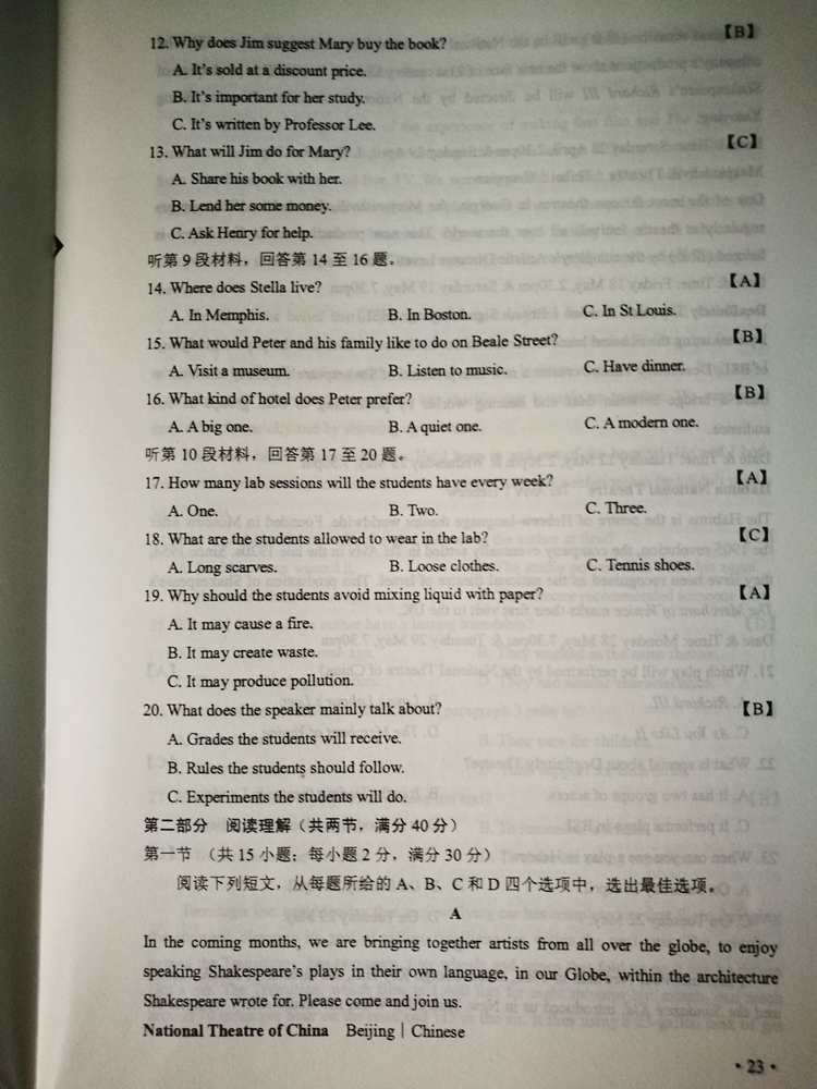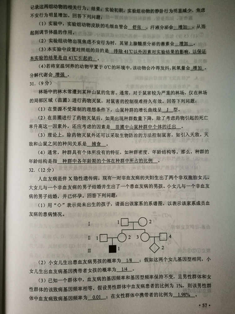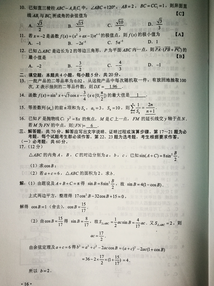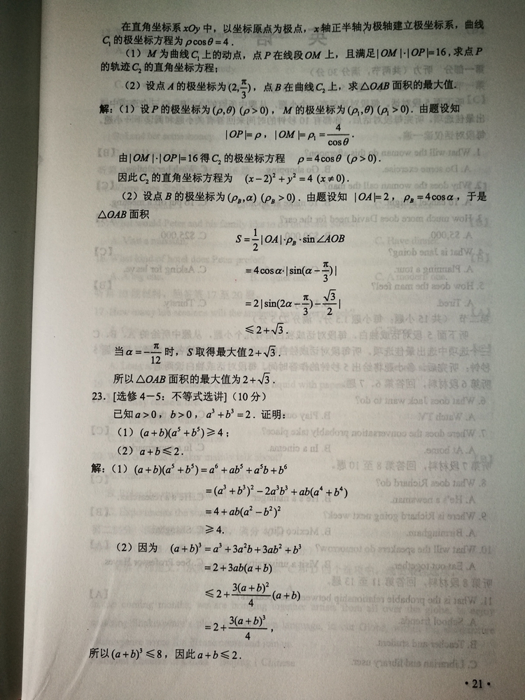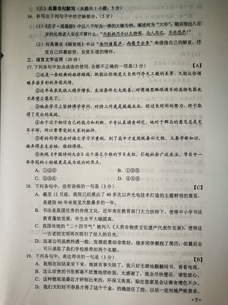 陜西:2017年普通高等學校招生考試試題及參考答案