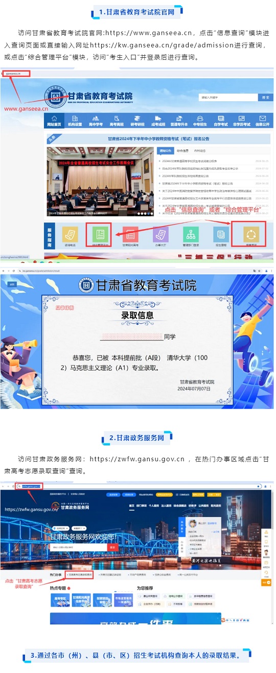 | 甘肅省2024年普通高考錄取結果查詢方式 |