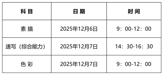 2026年河北省普通高校招生美術(shù)與設(shè)計(jì)類專業(yè)統(tǒng)考將于2025年12月6日-12月7日舉行。現(xiàn)將有關(guān)注意事項(xiàng)提示如下。