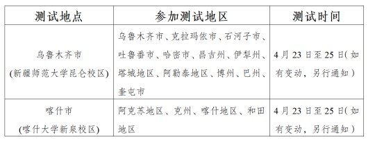 新疆2025年普通高等學校招生體育類專業測試(以下簡稱“體育測試”)工作將于2025年4月23日至25日(如因天氣原因臨時有變動,另行通知,請隨時關注新疆教育考試院官方網站www.xjzk.gov.cn)在烏魯木齊市、喀什市兩個測試點進行。網上報名和繳費工作于2025年4月7日12時開始,4月11日18時截止,報考2025年體育測試考生請勿錯過。