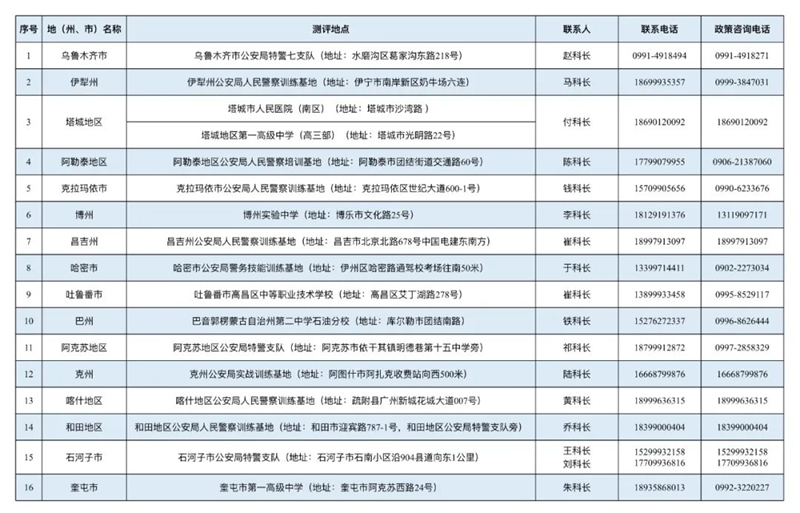 | 新疆2025年公安普通高等院校公安專業(yè)面試、體檢和體能測評點地址及政策咨詢熱線 |