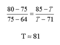其中,Y表示原始成績,即75分;Y1、Y2分別表示原始成績區間的下限和上限,即64分、80分;T1、T2分別表示等級分數區間的下限和上限,即71分、85分;T就是轉換后小明的等級分數。重點來啦!具體計算過程是這樣的,同學們一定要睜大眼睛看清楚——