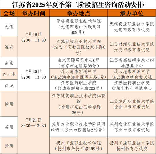江蘇省招就中心主辦的江蘇省2025年夏季第二階段招生咨詢活動安排