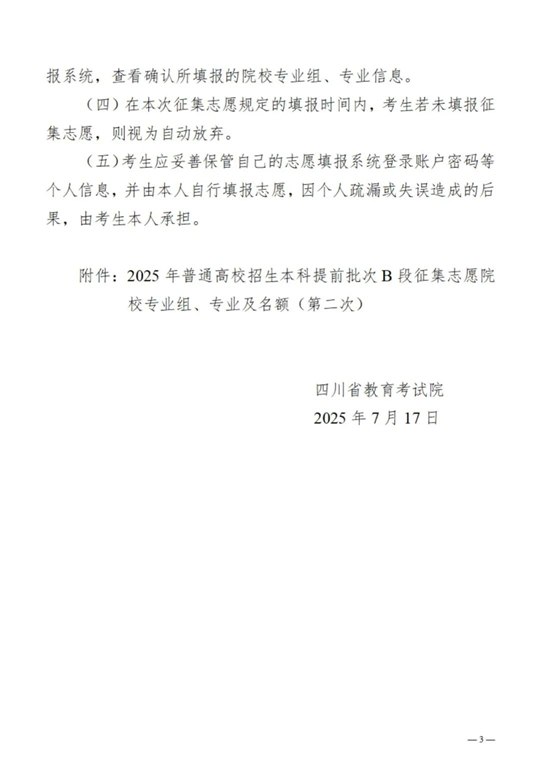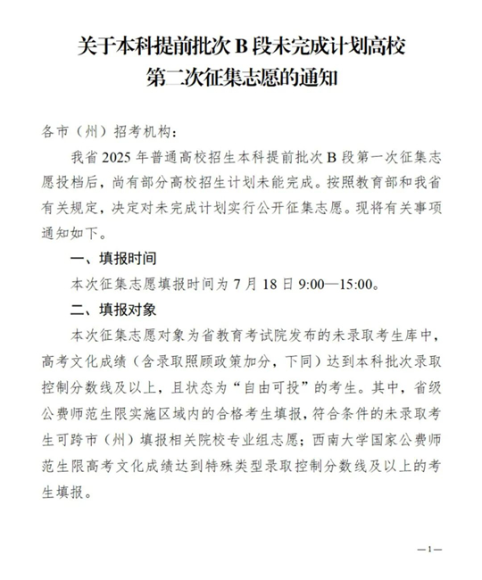 四川:關于本科提前批次B段未完成計劃高校第二次征集志愿的通知