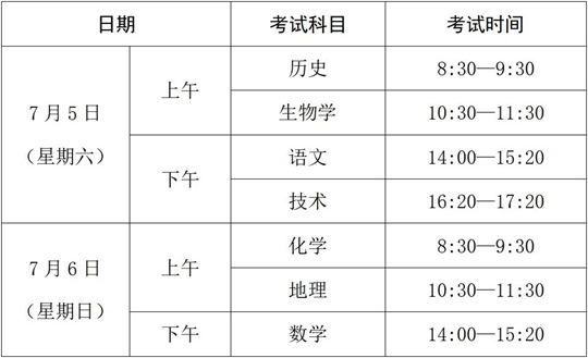 本次考試于7月5日-6日舉行,我省共64萬余考生報名,全省設345個考點,7萬余個考場。學考定時定科統一安排,本次開考7個科目,高一學生考歷史、地理、化學、生物學,高二學生考語文、數學、技術。社會人員根據自己本次報名的科目參加考試。