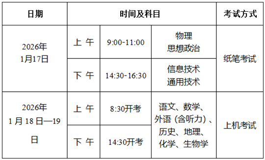 我市2025-2026學年度第一學期普通高中學業(yè)水平合格性考試將于2026年1月17日-19日進行,F(xiàn)將考試及報名有關(guān)安排公告如下: