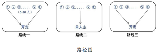 2.自備服裝須大方得體,女生須穿高跟鞋(不得帶水臺),男生須赤足。每人按照規定的3種展示路徑進行臺步展示,時長不超過3分鐘。展示路徑見下圖: