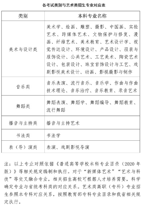 附件:1.各考試類別與藝術類招生專業對應表