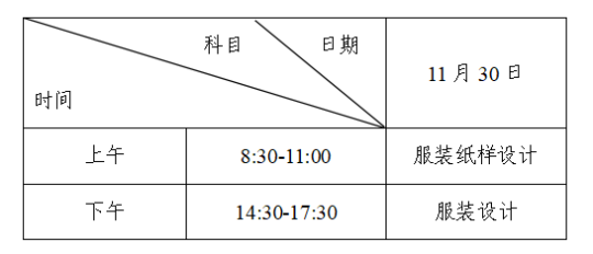 服裝紙樣設計和服裝設計考試時間統一安排如下: