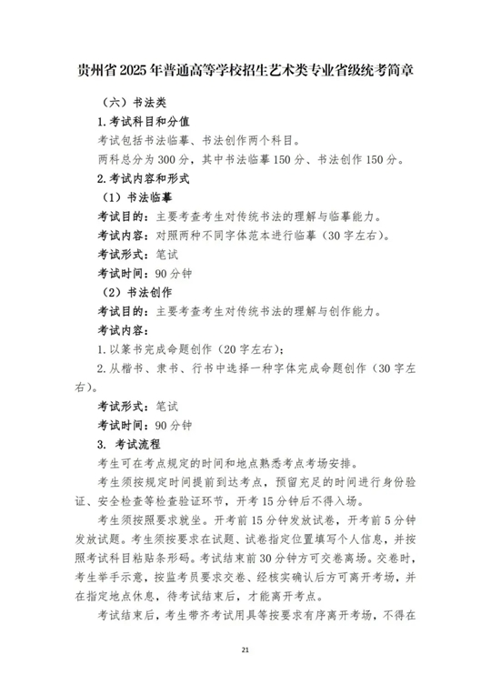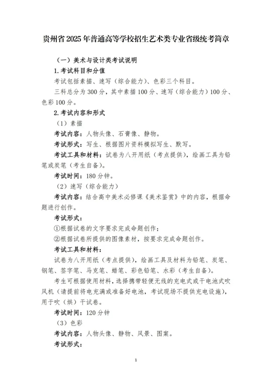 | 貴州省2025年普通高等學校招生藝術類專業省級統考簡章 |