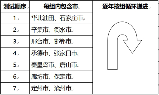 4.測試順序:采取循環遞進方式安排各市考生測試順序。具體辦法為:每2市為一組,按往年測試順序將14個市分為7個組,逐年按組循環遞進。2026年測試順序依次為: