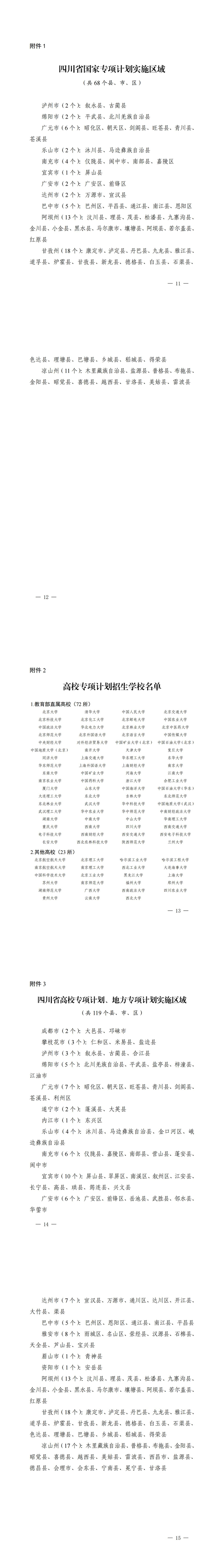 3.四川省高校專項計劃、地方專項計劃實施區域