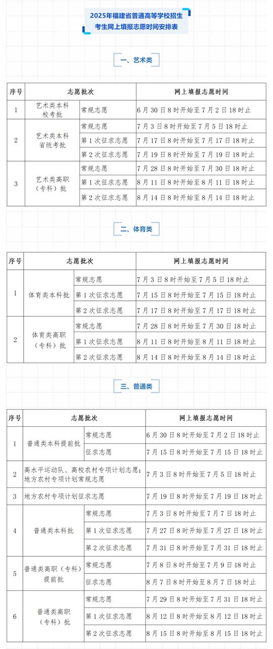 附件:2025年福建省普通高等學校招生考生網上填報志愿時間安排表