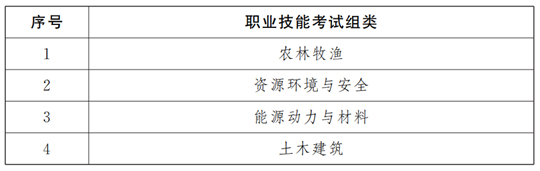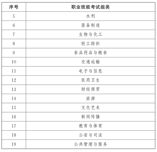 根據《職業教育專業目錄》,將職業技能考試劃分為19個組類,對應19個專業大類。