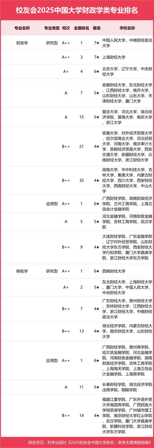 | 校友會2025中國大學財政學類專業排名,上海財經大學、湖南財政經濟學院第一 |