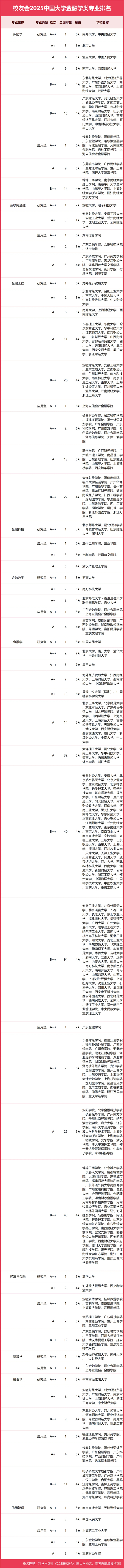 校友會(huì)2025中國(guó)大學(xué)金融學(xué)類專業(yè)排名(應(yīng)用型)