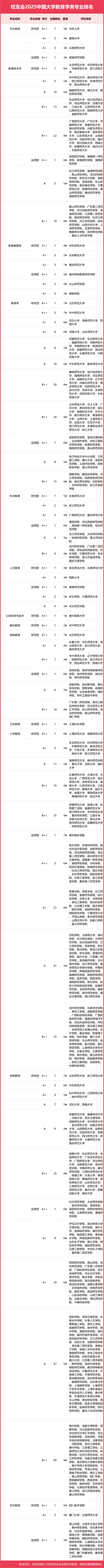 校友會(huì)2025中國大學(xué)教育學(xué)類專業(yè)排名(研究型)
