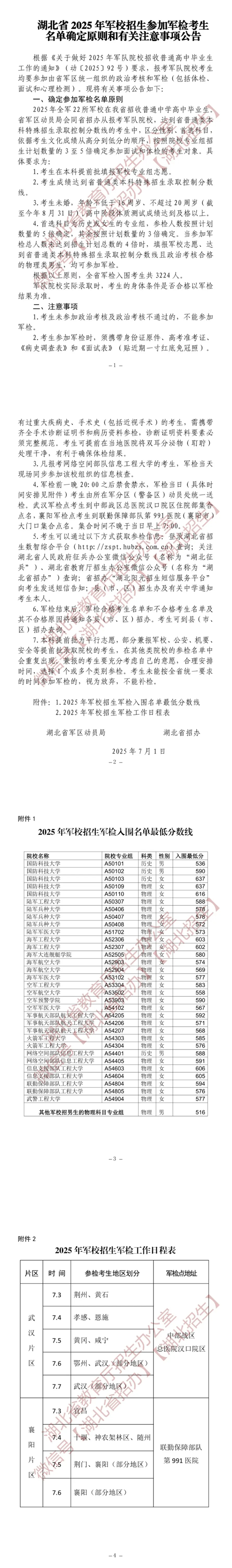 湖北省2025年軍校招生參加軍檢考生名單確定原則和有關注意事項公告