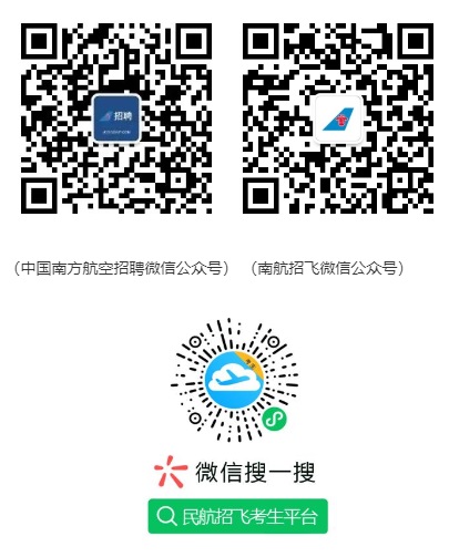 微信公眾號:“南航招飛”、“中國南方航空招聘”