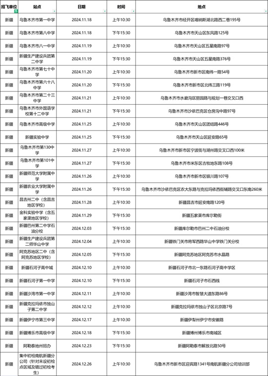| 2025年度南航招飛新疆地區(qū)初檢安排 |