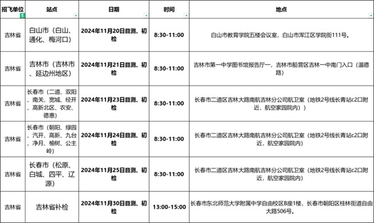 中國南方航空股份有限公司聯合北京航空航天大學、中國民航大學在吉林開展校企合作招飛,現面向參加2025年全國統一高考的吉林高中畢業生招收飛行學員。初檢安排如下: