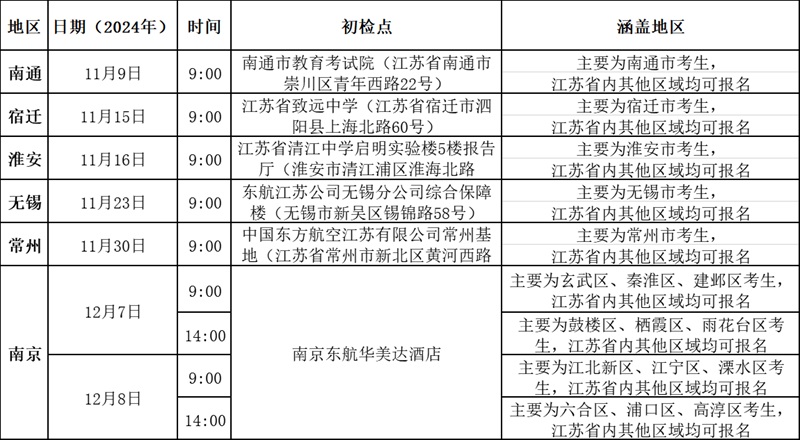 | 中國東方航空2025年度校企合作招飛預選初檢日程表(江蘇省) |
