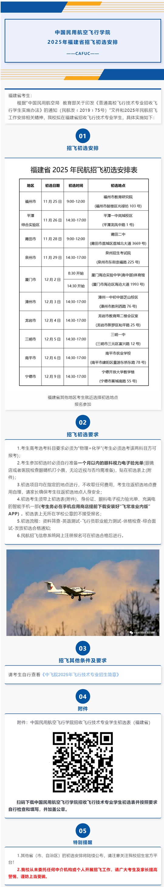 中國民用航空飛行學(xué)院2025年福建省招飛初選安排