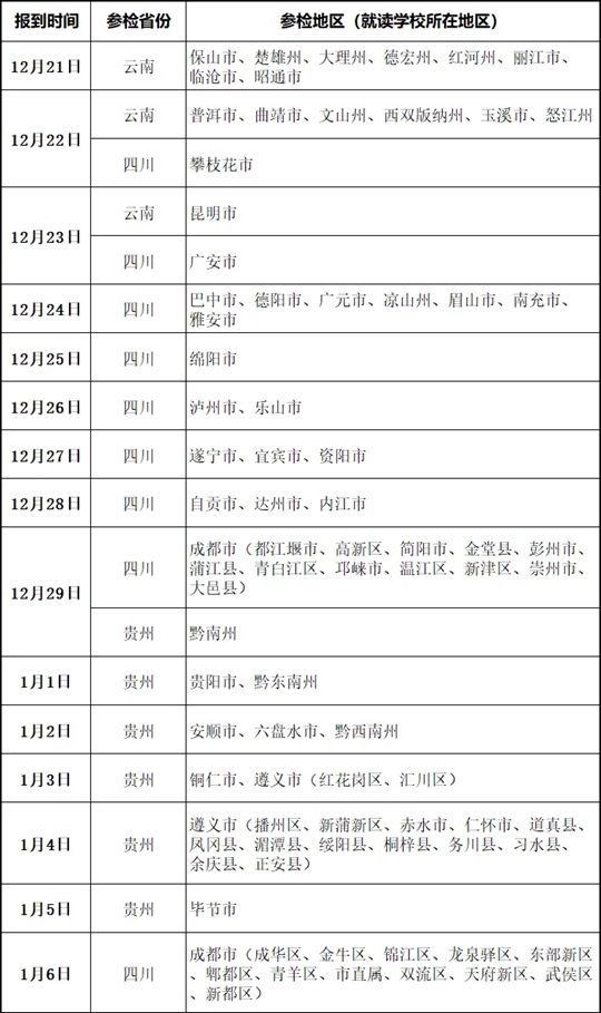 根據2025年度招飛工作安排,計劃于12月下旬至1月上旬,組織云南、貴州、四川部分初選合格考生參加招飛復選檢測。參檢對象以成都招飛中心下發的《復選參檢考生名單》為準,《名單》現已轉發各招考部門,由各招考部門通知相關學校,組織學生按要求參檢,無故不參加復選檢測的視為放棄!!!