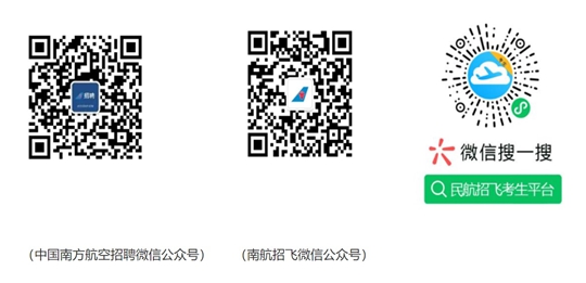 微信公眾號:“南航招飛”、“中國南方航空招聘”