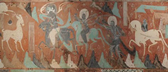 《郊游》敦煌莫高窟第257窟《鹿王本生圖》是北魏時期的作品,屬敦煌壁畫早期作品,其造型用線簡練概括,結(jié)構(gòu)清晰合理,構(gòu)圖長卷平鋪,色彩協(xié)調(diào)統(tǒng)一,具有中國傳統(tǒng)審美特點,從內(nèi)容到表現(xiàn)手法都體現(xiàn)出中國傳統(tǒng)繪畫最基本的特征。