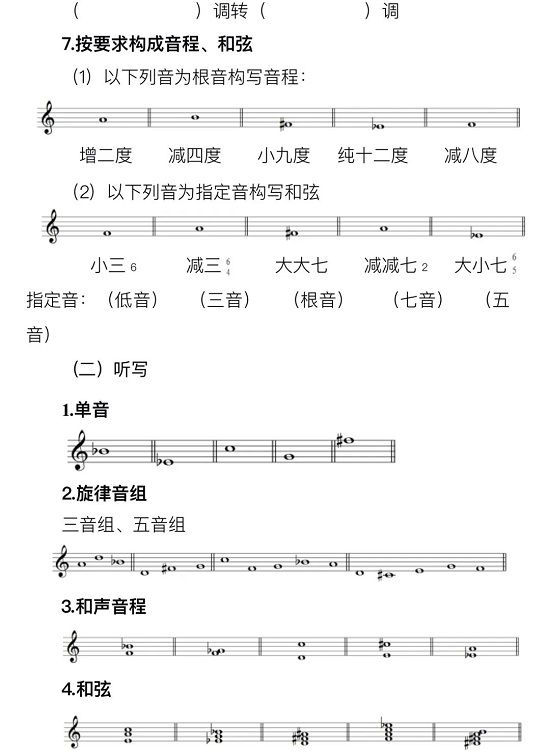 3.考試形式:采取筆試或機(jī)試方式,使用五線譜記譜,提供標(biāo)準(zhǔn)音a1參照。