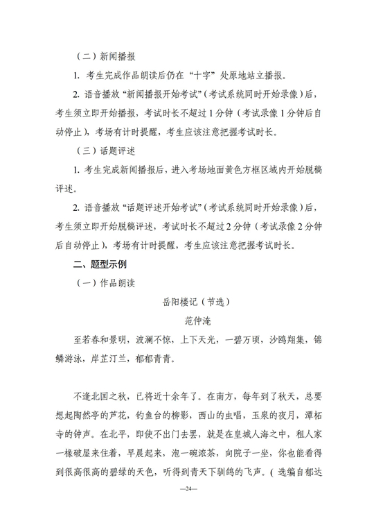 為進一步做好我省2024年普通高等學(xué)校藝術(shù)類專業(yè)全省統(tǒng)一考試工作,方便考生復(fù)習(xí)應(yīng)考,我院制定了2024年音樂類、舞蹈類、表(導(dǎo))演類、播音與主持類、美術(shù)與設(shè)計類、書法類專業(yè)考試考試流程及題型示例(考生可登錄湖南省教育考試院官網(wǎng)http://jyt.hunan.gov.cn/sjyt/hnsjyksy或湖南招生考試信息港http://www.hneeb.cn查詢),現(xiàn)印發(fā)給你們,請認真宣傳并通知各高級中學(xué)做好備考工作。