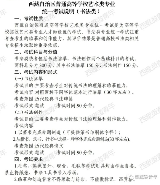 西藏自治區普通高等學校藝術類專業統一考試說明(書法類)
