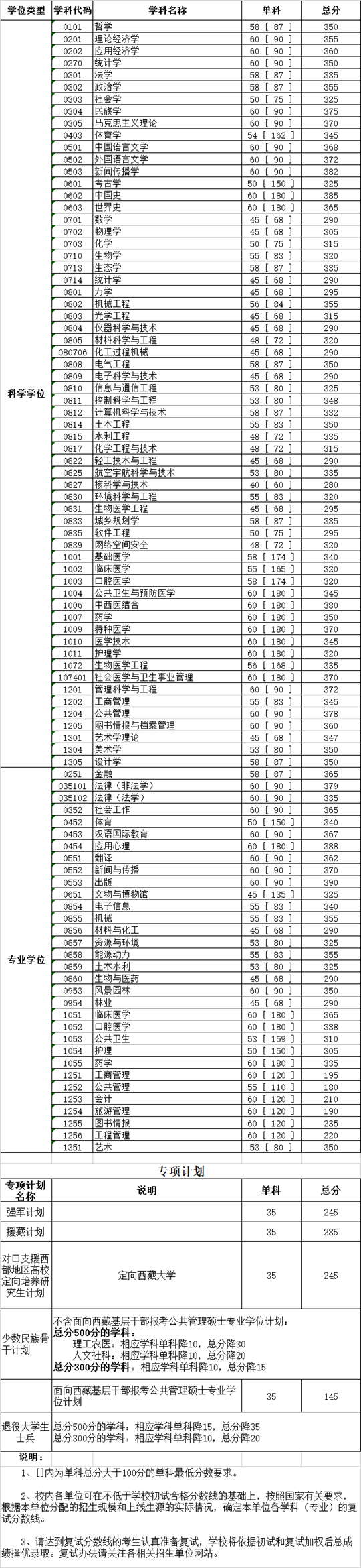 四川大學(xué)2020年碩士研究生入學(xué)考試初試合格分?jǐn)?shù)線