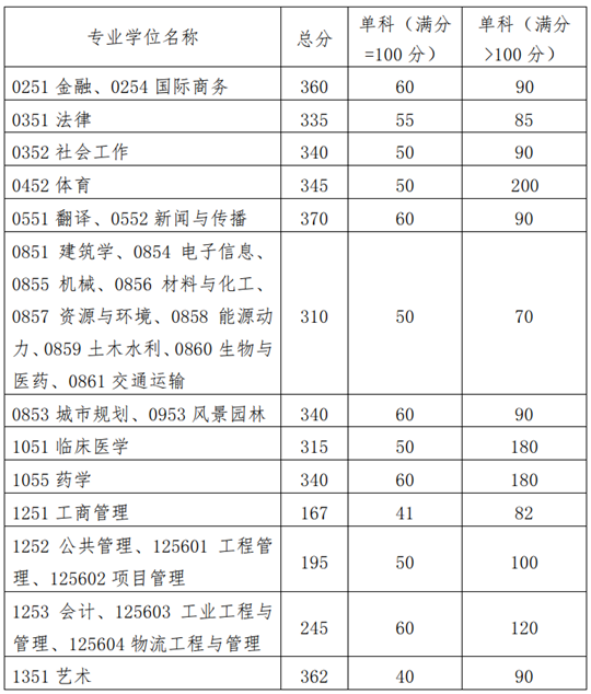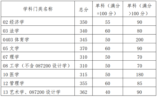 初試總分不低于300分,英語、政治單科不低于40分,業(yè)務(wù)課一、業(yè)務(wù)課二單科不低于70分。