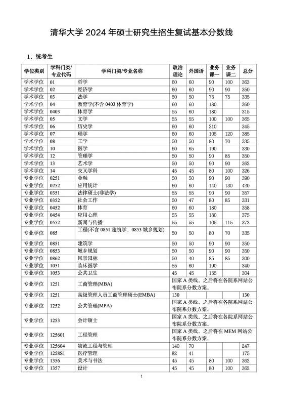 | 清華大學2024年碩士研究生招生復(fù)試基本分數(shù)線 |