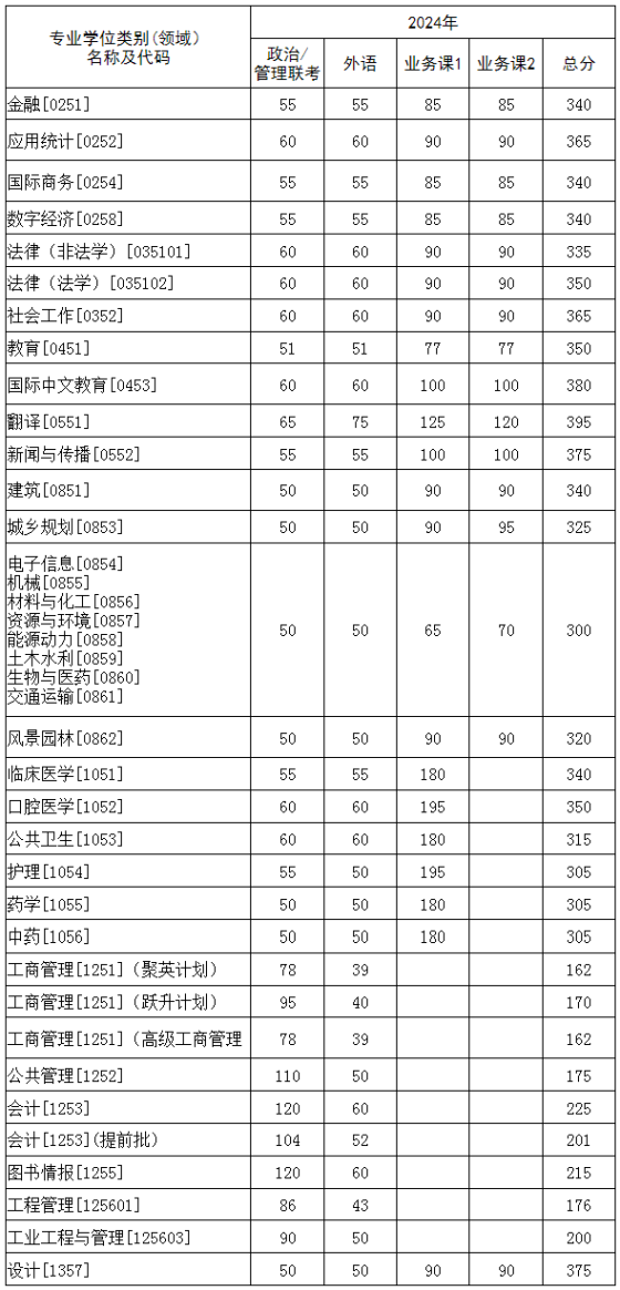 | 華中科技大學2024年碩士研究生招生考試復試基本分數要求 |