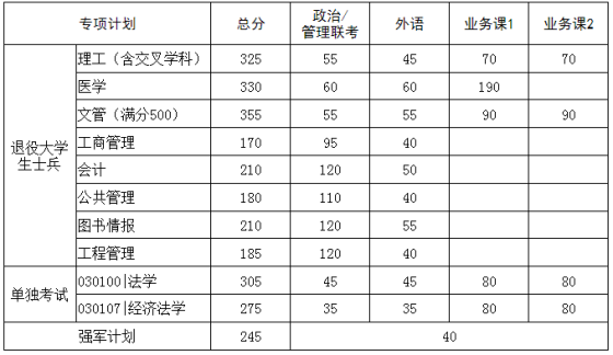 除專項計劃外,未達到以上復試基本分數要求的考生不具備我校復試(含調劑復試)資格。