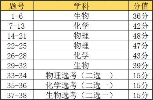 按分值分配,生物需25-35分鐘完成,化學需45-50分鐘完成,物理需要1小時完成。選擇題安排50~60分鐘左右完成,非選擇題大約安排90~100分鐘左右完成為宜。