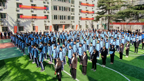 主持人康政老師宣布本次大會(huì)的開始,雄壯激昂的《義勇軍進(jìn)行曲》響徹全場(chǎng),五星紅旗隨著歌聲冉冉升起,全體師生莊嚴(yán)肅穆,向國(guó)旗行注目禮、齊唱國(guó)歌,本次大會(huì)正式拉開帷幕。