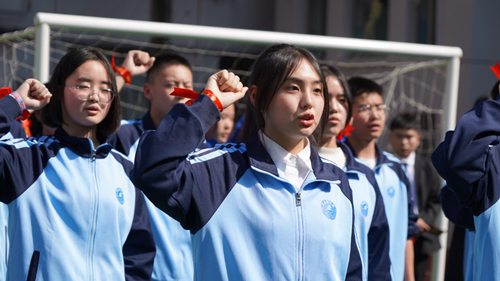 隨后,優(yōu)益躍學(xué)校副校長(zhǎng)張誠(chéng)滿懷對(duì)莘莘學(xué)子的無限祝福,帶領(lǐng)全體奮戰(zhàn)在一線的教師們手舉右拳,莊嚴(yán)宣誓。