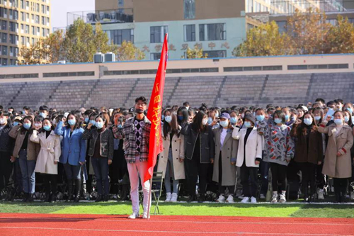 金秋丹桂香校園,建校二十載開新篇。2021年11月6日上午10:00,在青島恒星科技學院迎評促建沖刺的關鍵時刻,于體育場舉行“同心協力、決勝評估”誓師大會暨書院成立典禮,出席本次活動的領導有青島恒星集團董事局主席、青島恒星科技學院董事長陳昌金博士,青島恒星集團董事局副主席沈蓮英、執行校長徐愛民教授、副校長王春娟教授等校領導,各二級學院院長、各處室處長以及全體師生共同參加,本次大會由黨委副書記王立庭主持。