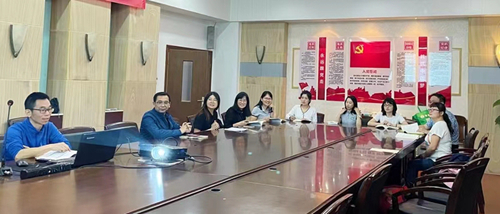 吳麗鎬(左一)組織教研室老師召開(kāi)座談會(huì)現(xiàn)場(chǎng)